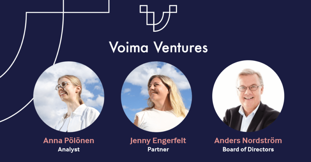 Picture: Team advancement in Voima Ventures; Anna Pölönen (Analyst), Jenny Engerfelt (Partner), Anders Nordström (BoD member)